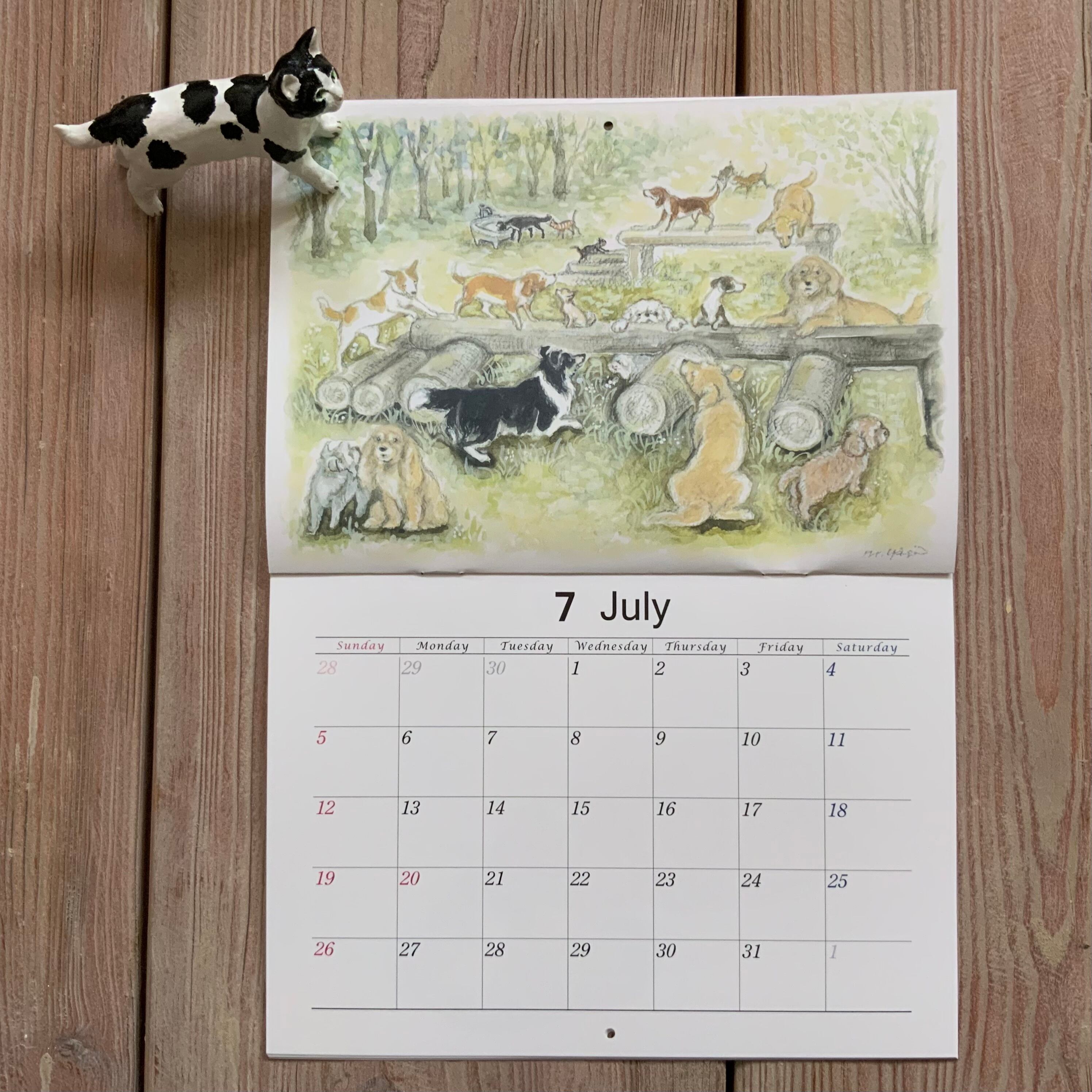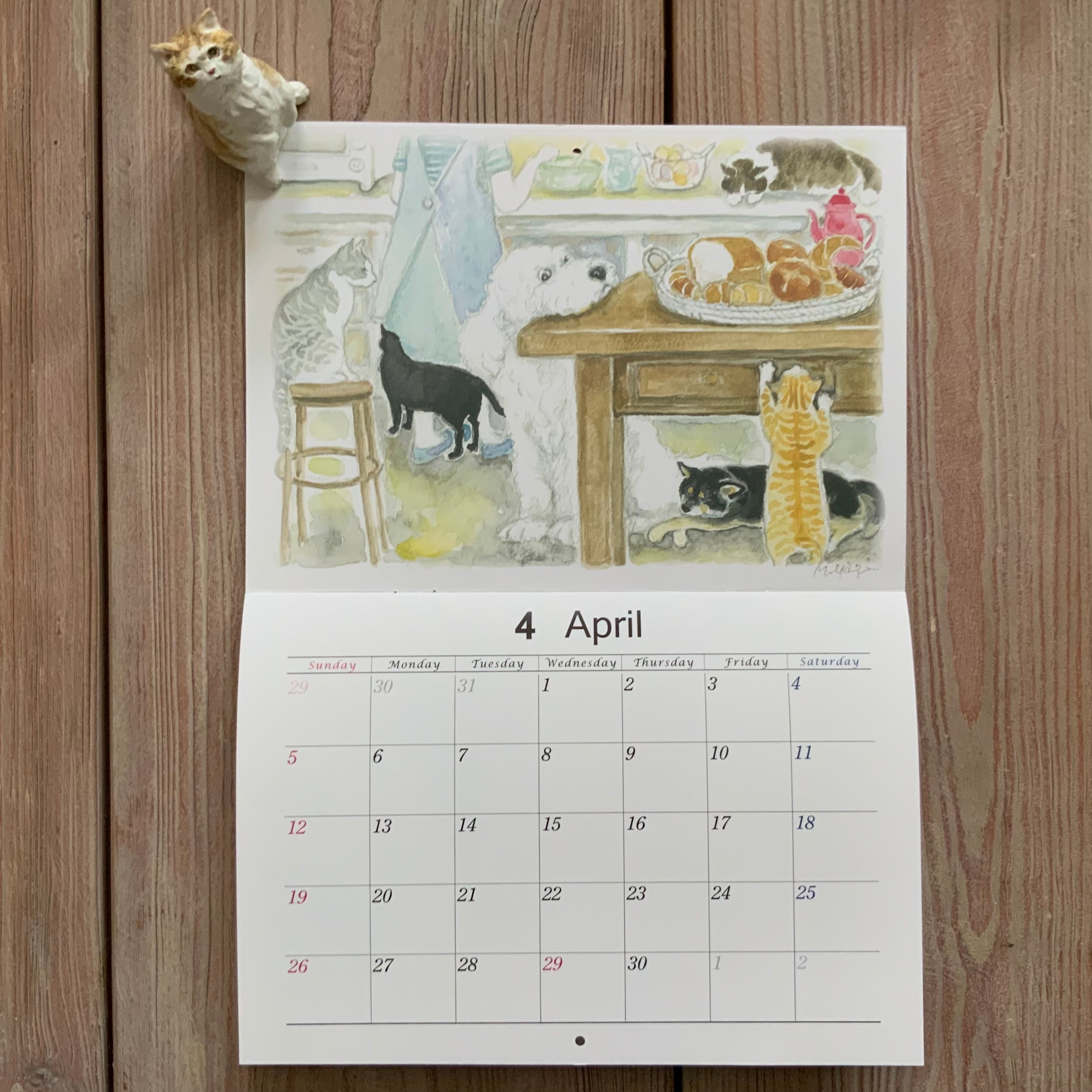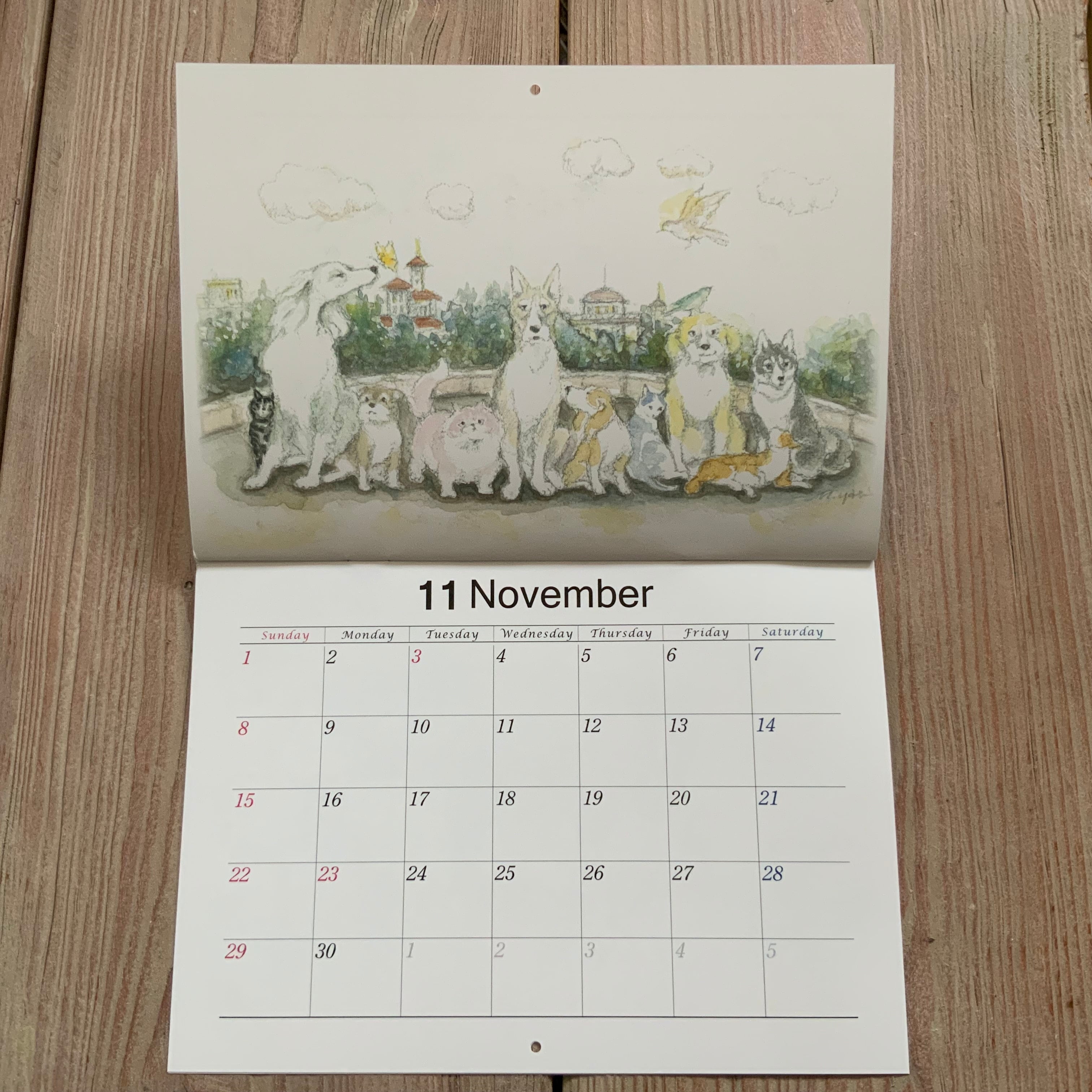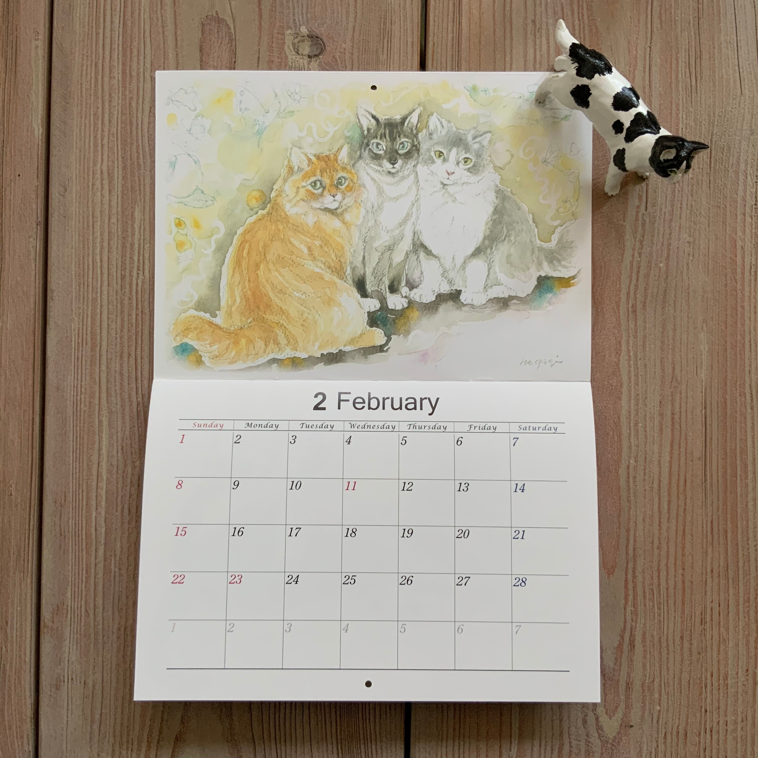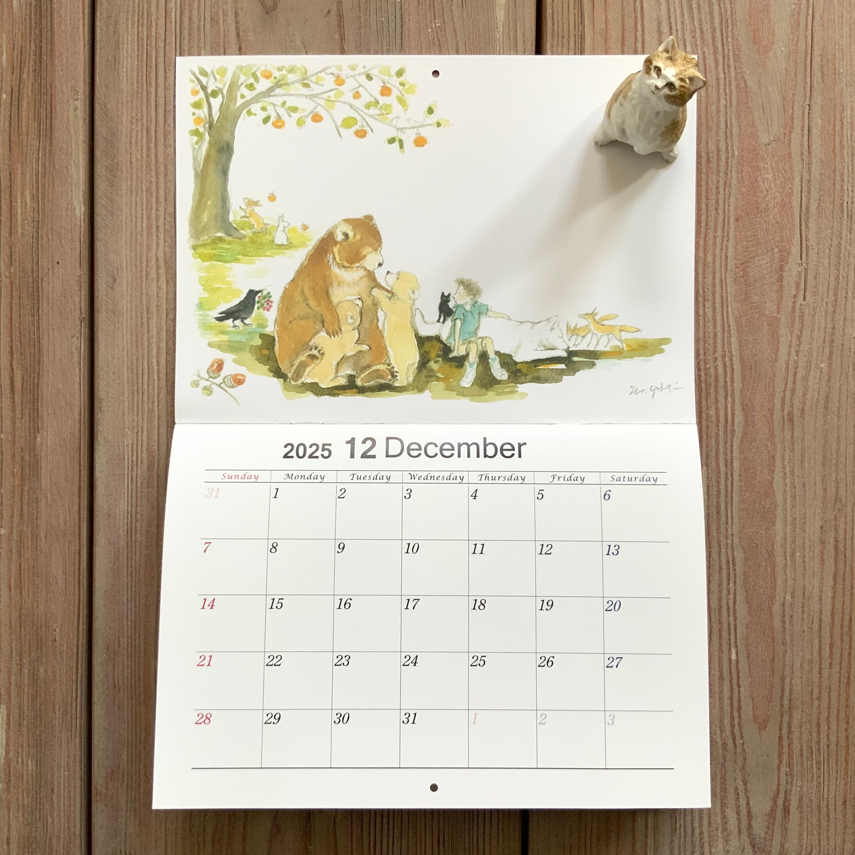 1年間で描き溜めた13枚の生き生きした猫と犬そして森の動物たちの作品が、毎年この時季にカレンダーになります。