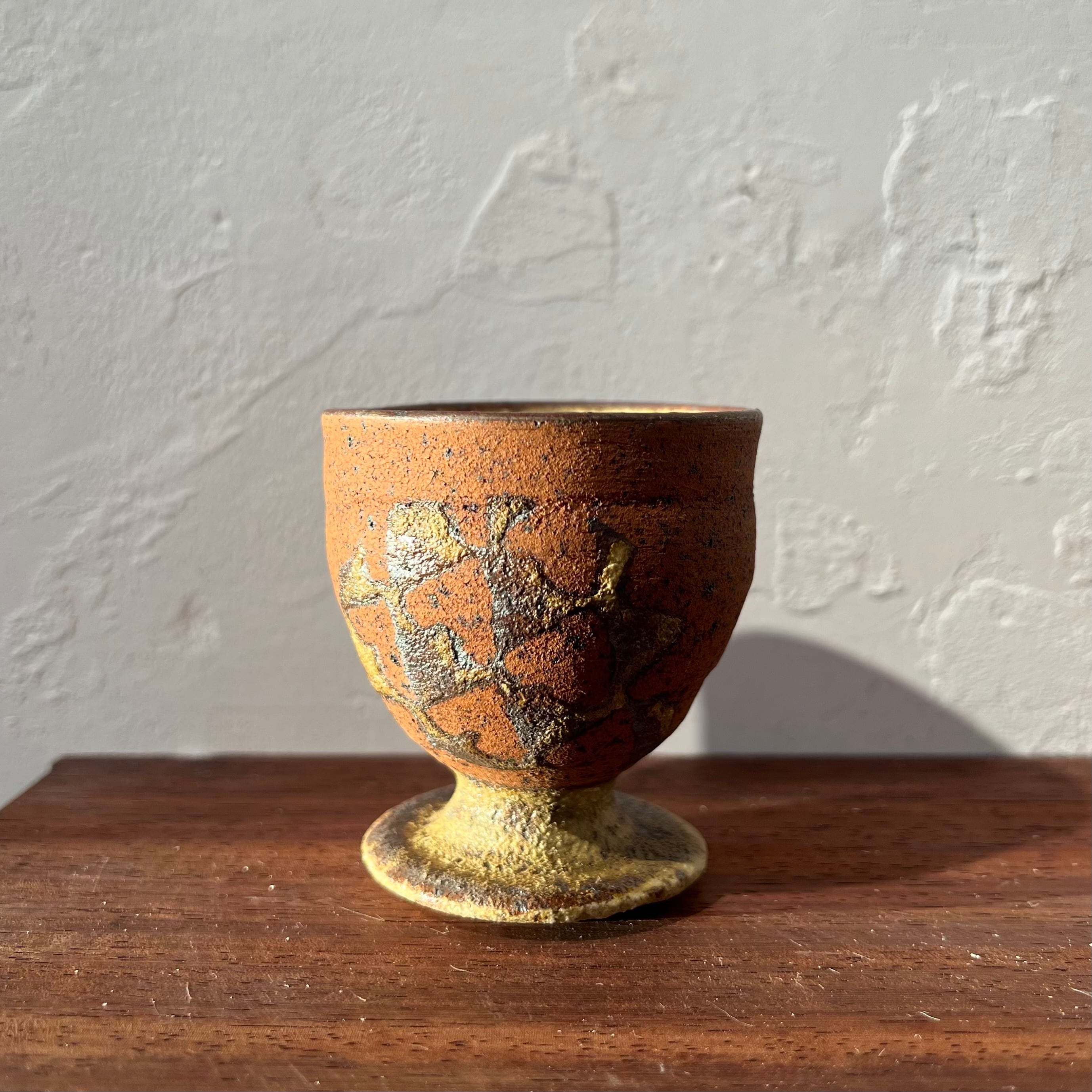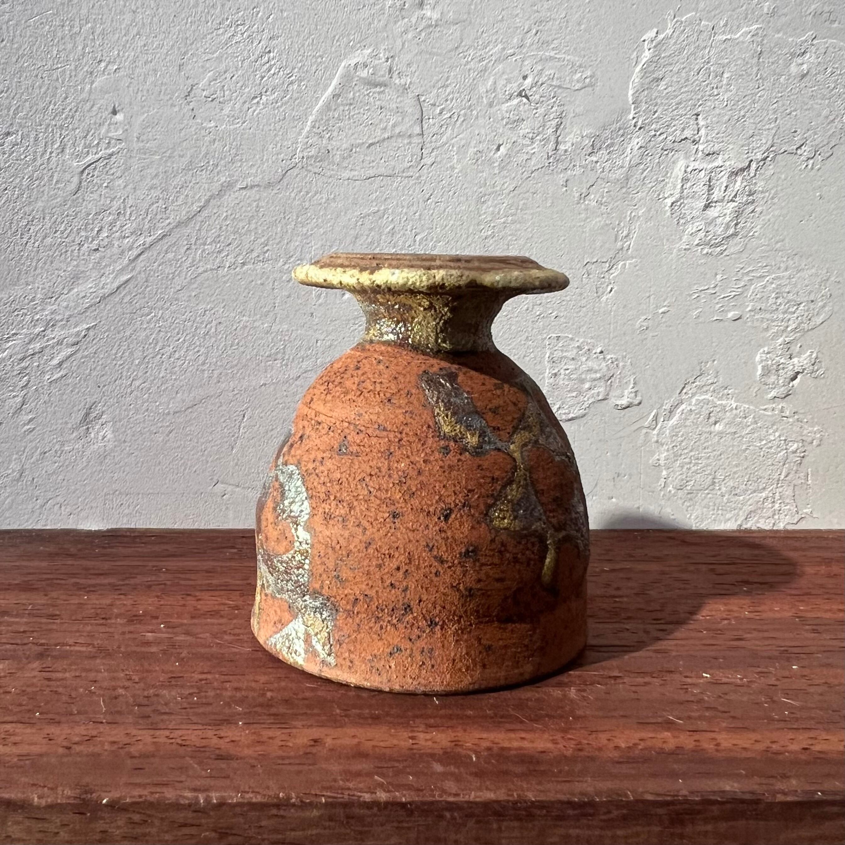 南伊豆の土を使い、ガス窯で1230℃で焼成後、焼き締め部分を漆作家に頼んで生漆を塗る。