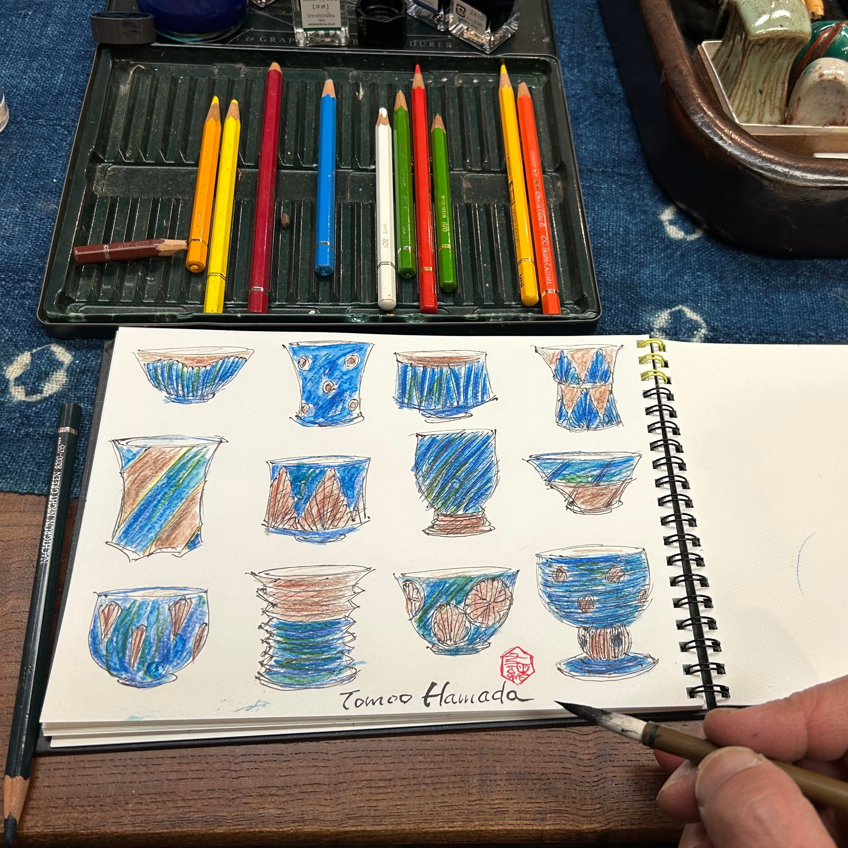 濱田友緒のスケッチをイラストレーターのMAKOが切り取り印刷しました。