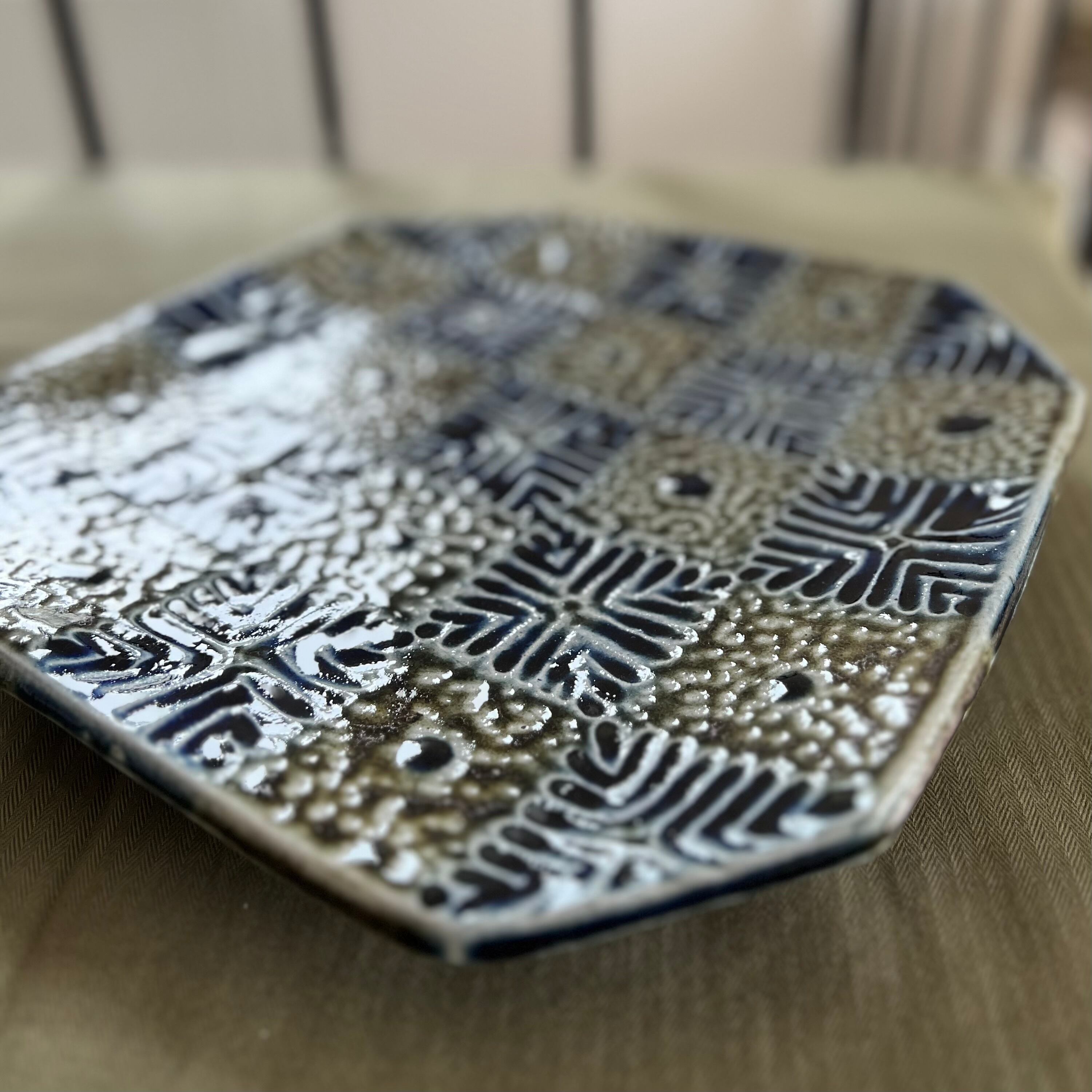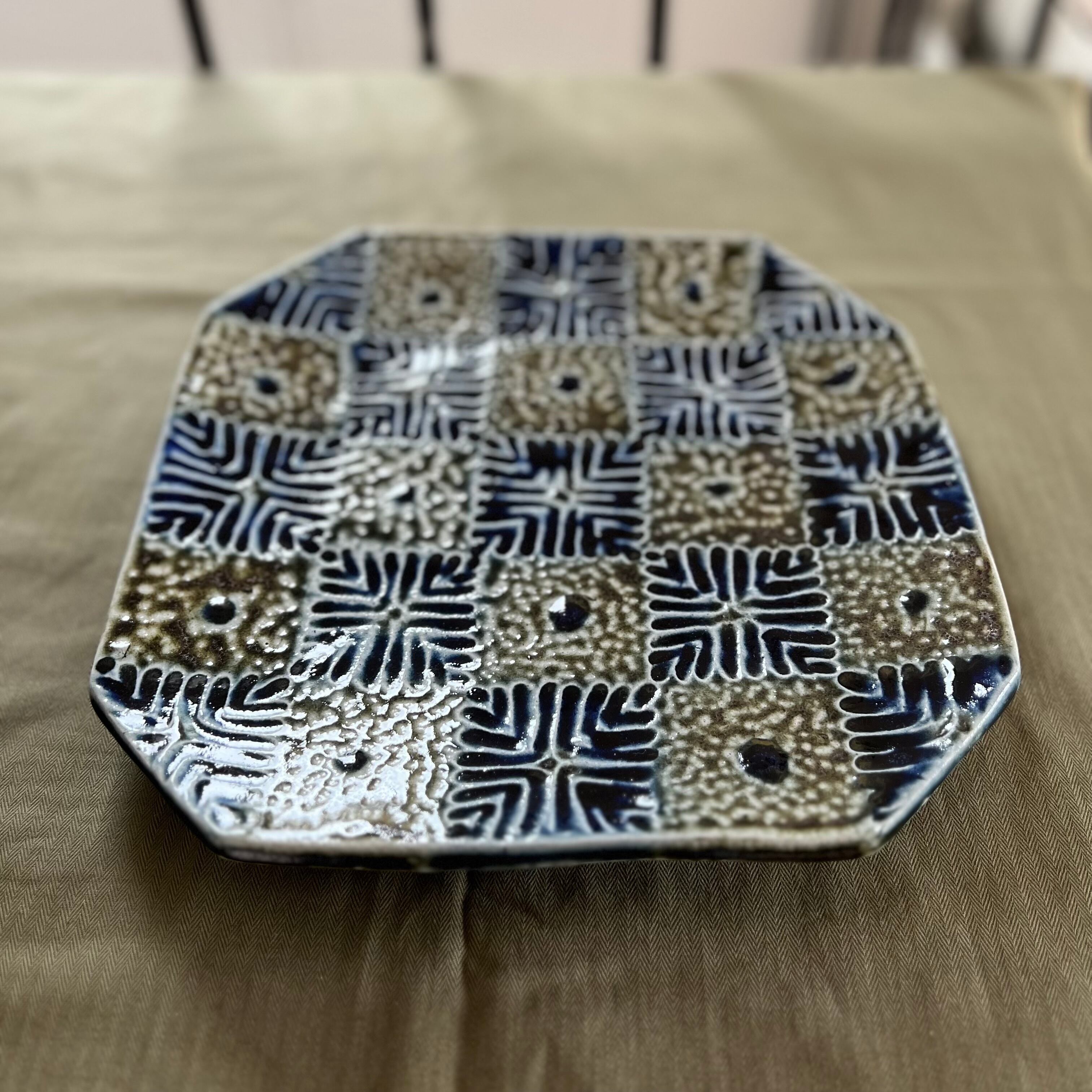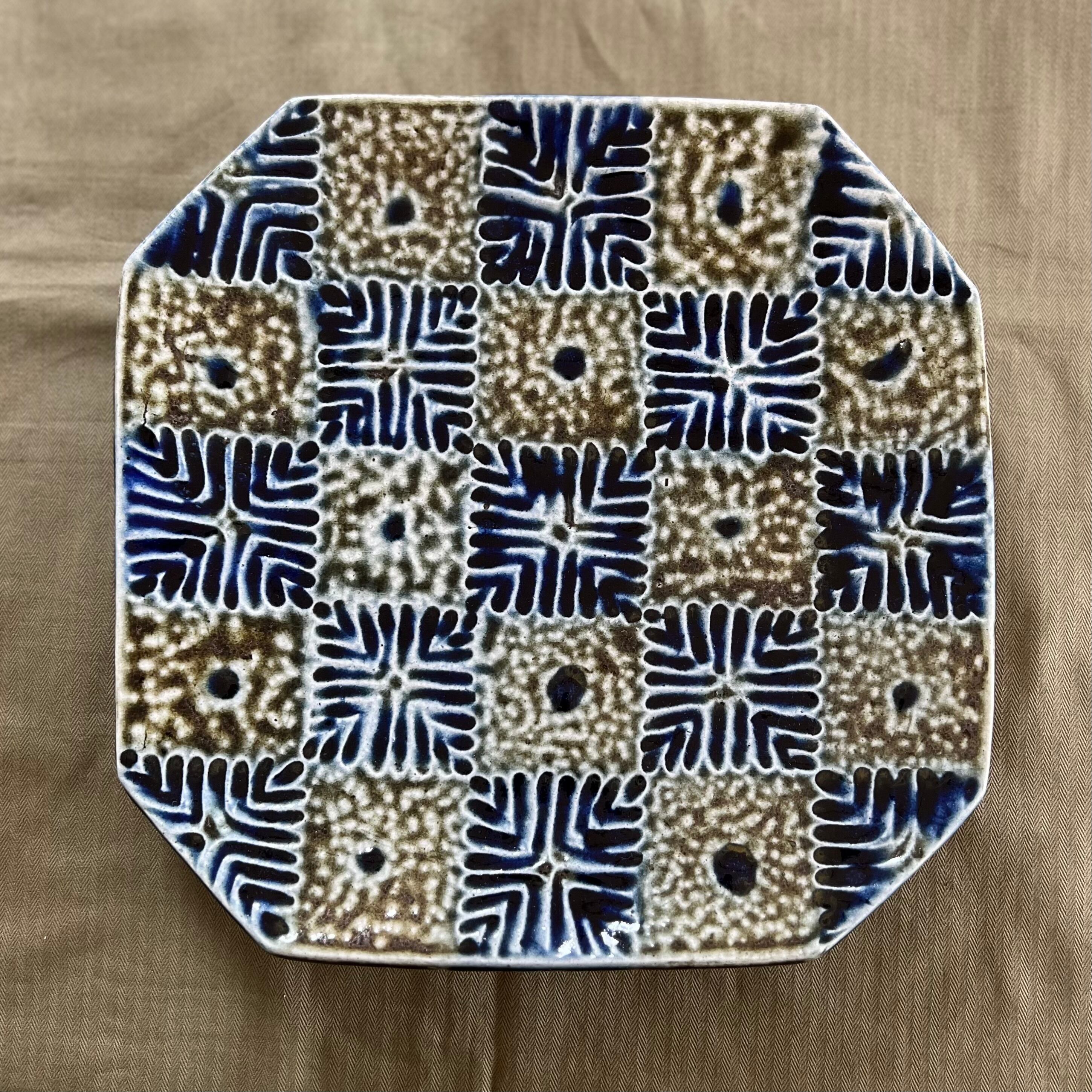 藍鉄塩釉鎬角皿#11 / 濱田友緒