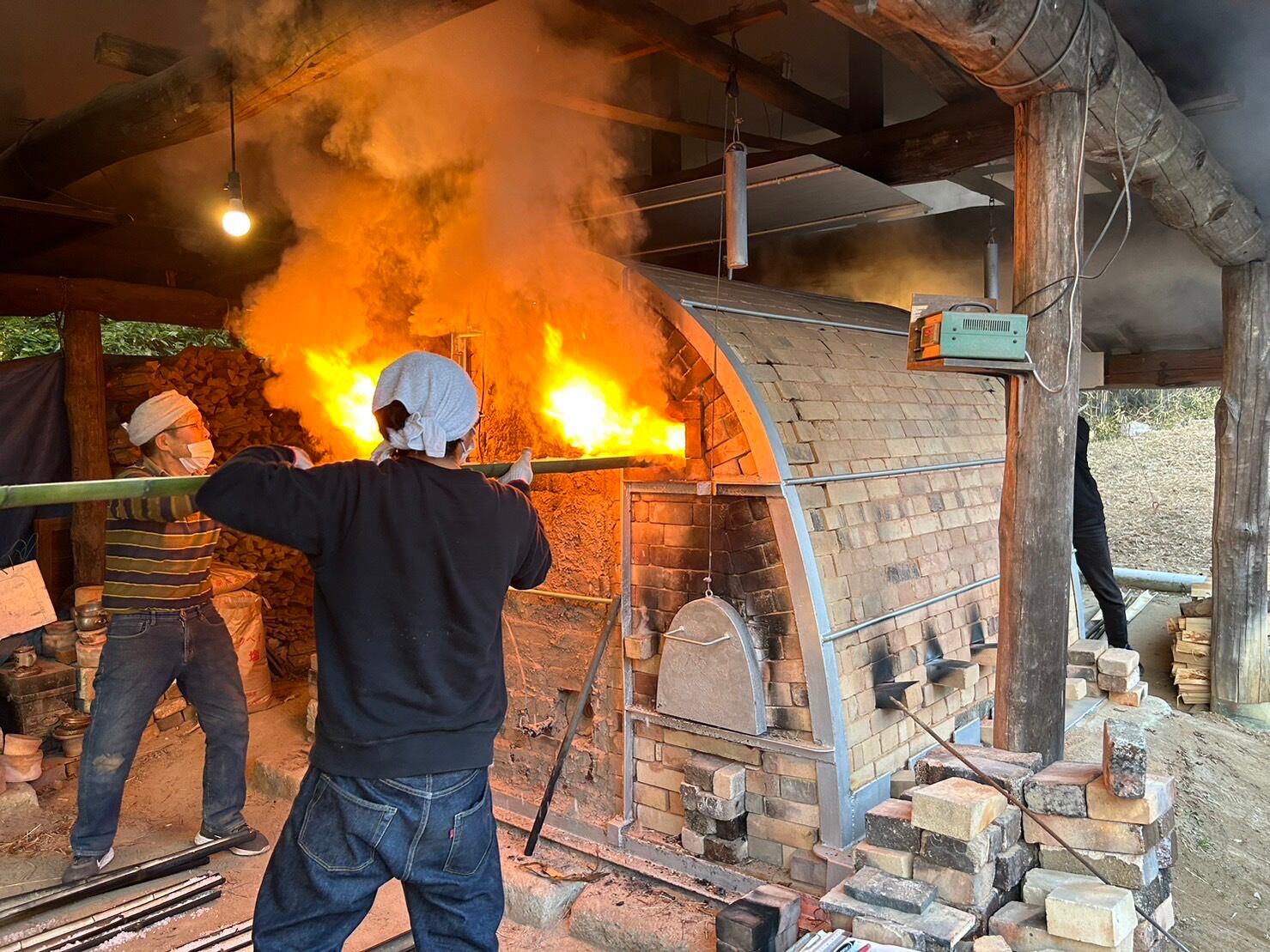 “DEEP BLUE” 濃い青を生み出す塩釉は、窯の中に塩を入れながら焼成する特殊な技法です。ドイツで13世紀ごろから始まった技法です。浜田窯初代の浜田庄司が1950年代に訪独してこの技法を学び濱田窯にて日本初の塩窯を作り、以来70年この技法を独自に発展させてきました。塩釉そのものはゆず肌の薄いガラス色ですが、呉須や鉄の顔量を下塗りすることで、濃い青や茶の発色を得ることが出来ます。焼成の際の燃料の松薪も作品に深い味わいを加えます。私自身も塩釉の仕事を始めて30数年、祖父の代に使用した登り窯よりも性能の良いアーチ窯を独自設計して塩釉の"DEEP BLUE" を追求している所です。