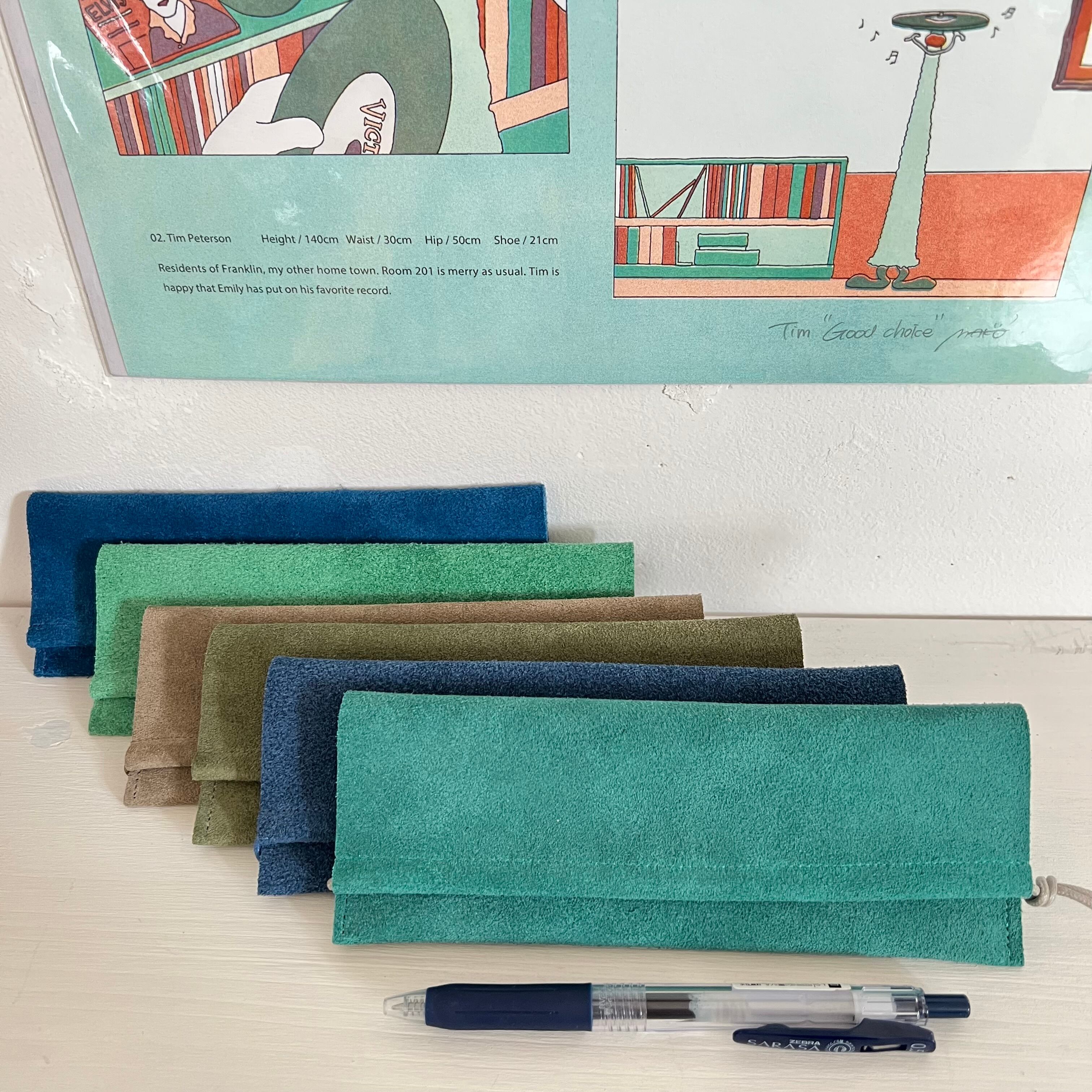 柔らかそうな革から、丸い形の眼鏡を出し入れ…。自分の眼鏡にも欲しくって、お願いしてみたら、特別にartseaへ6色のケースを作ってくれました。