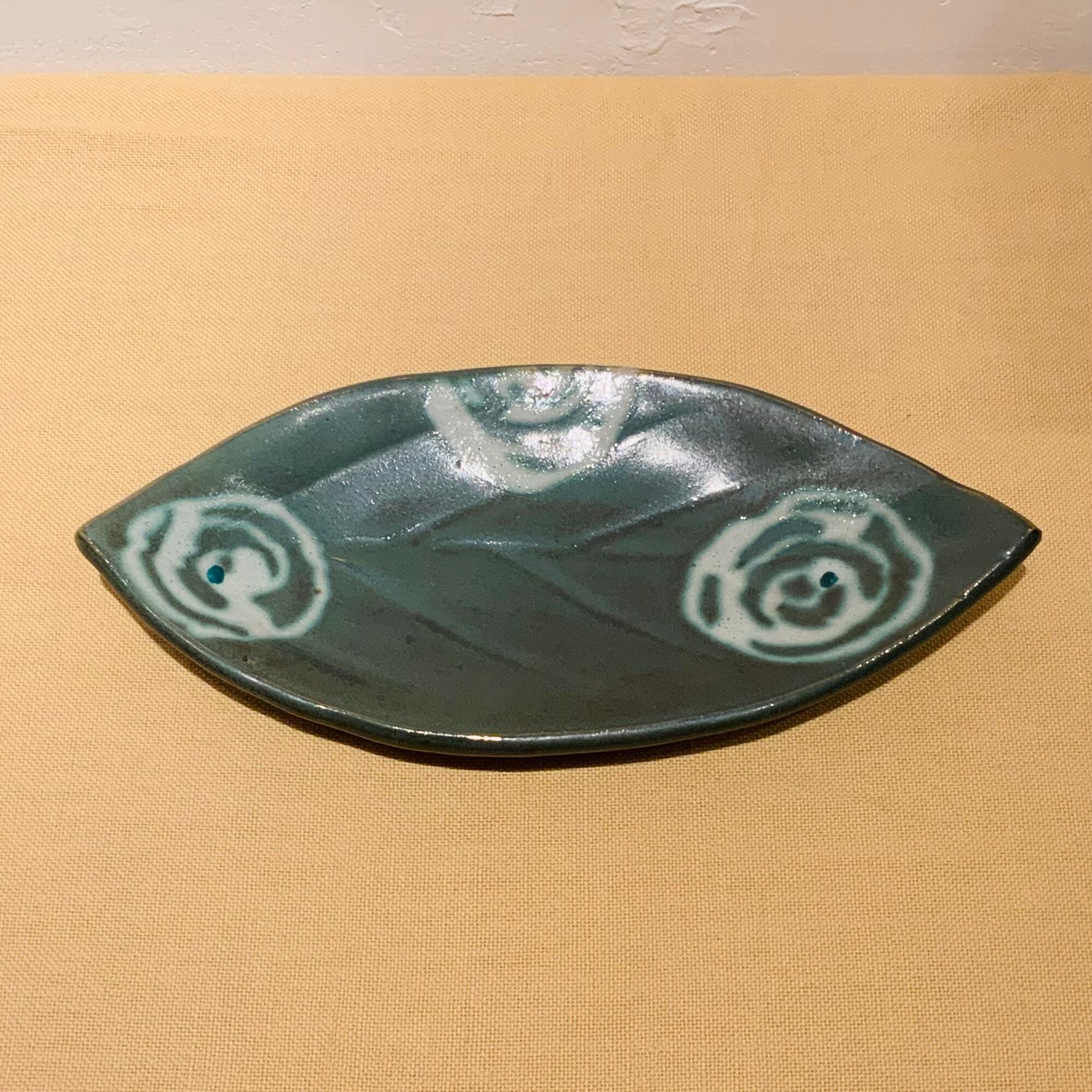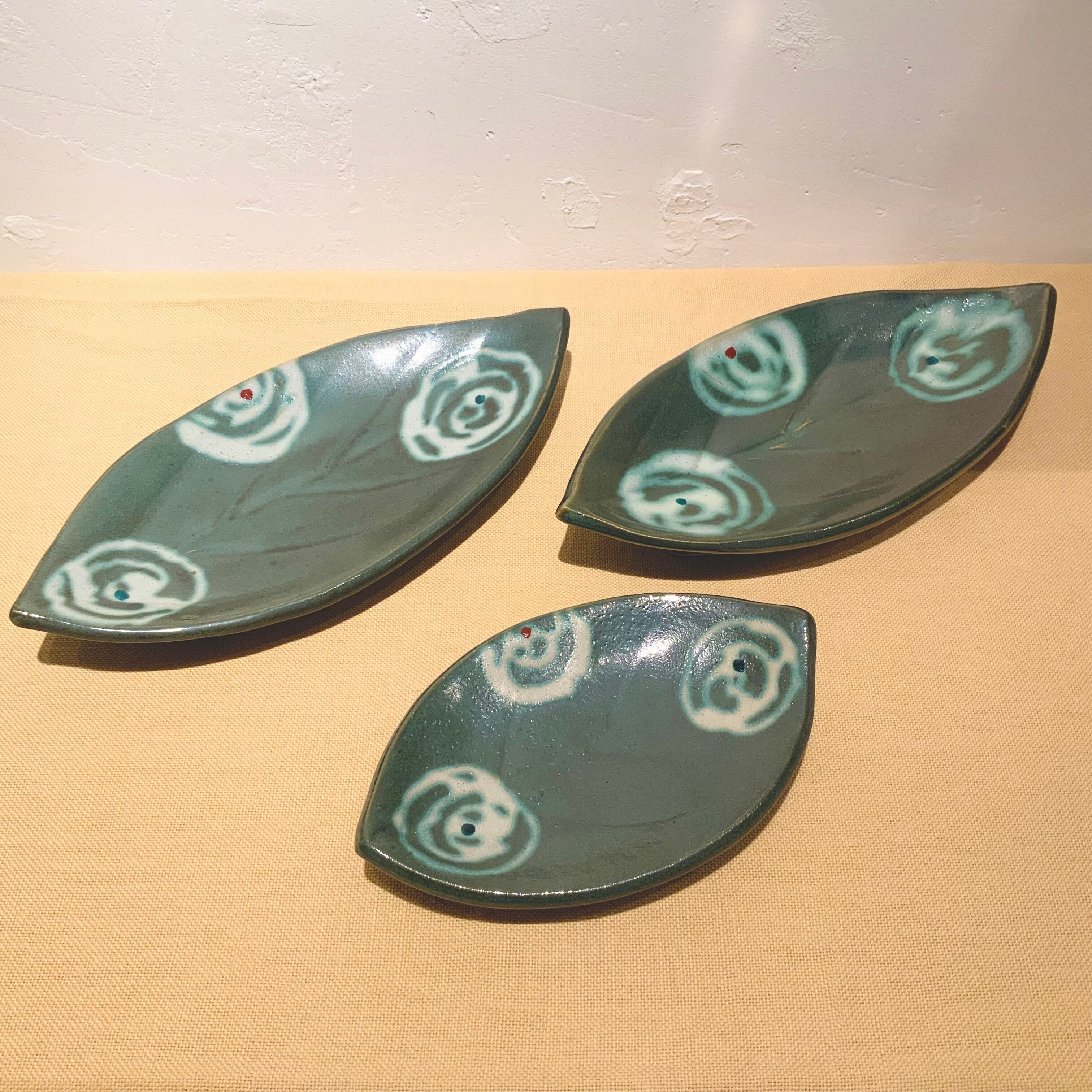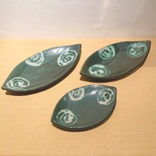 青釉白差赤絵葉形皿 #131 #132/ 濱田友緒
