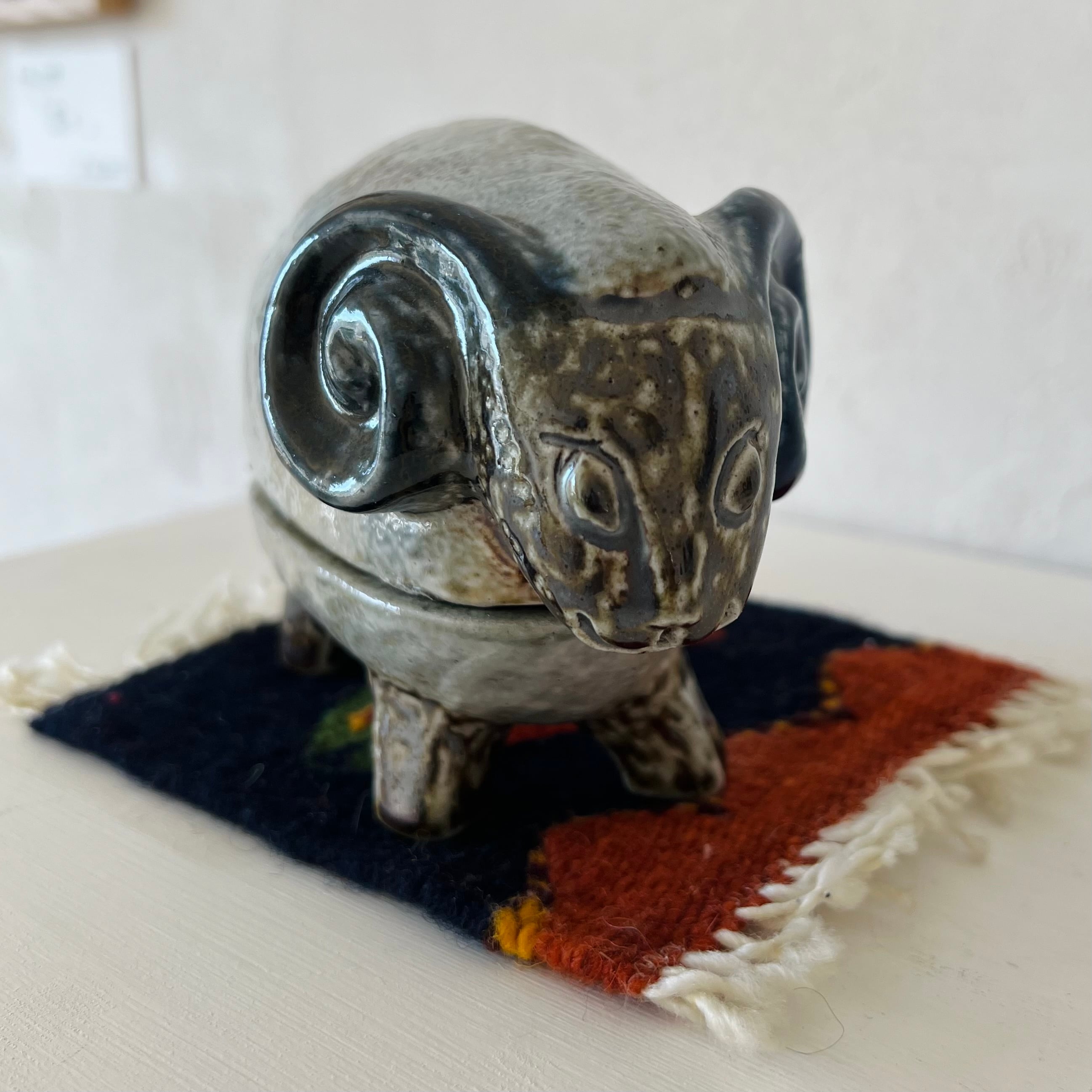藍鉄塩釉羊形香合 #18 / 濱田友緒